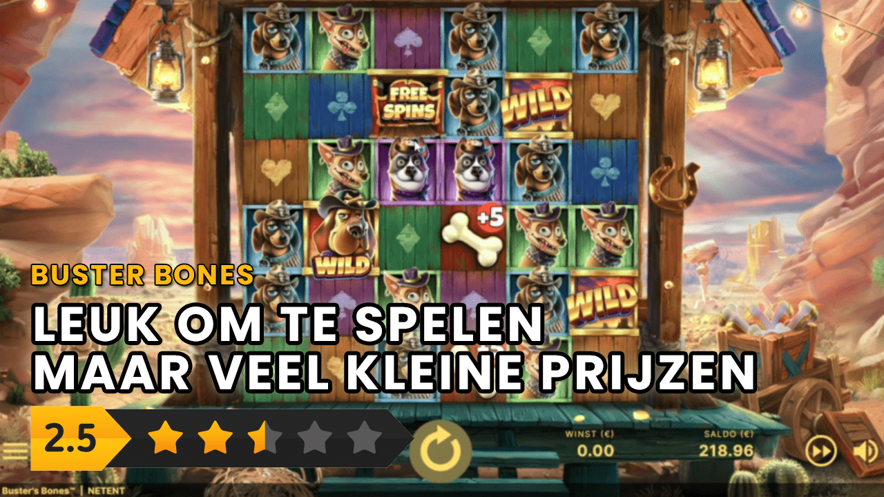 Dit is echt zo’n typische NetEnt slot. Wat betreft het design en de features zit alles leuk in elkaar. Toch is Buster Bones niet echt een gokkast die ik vaak zal gaan spelen. En ja, als je hem nog niet kent is hij best leuk om eens uit te proberen, maar hij gaat redelijk snel vervelen.