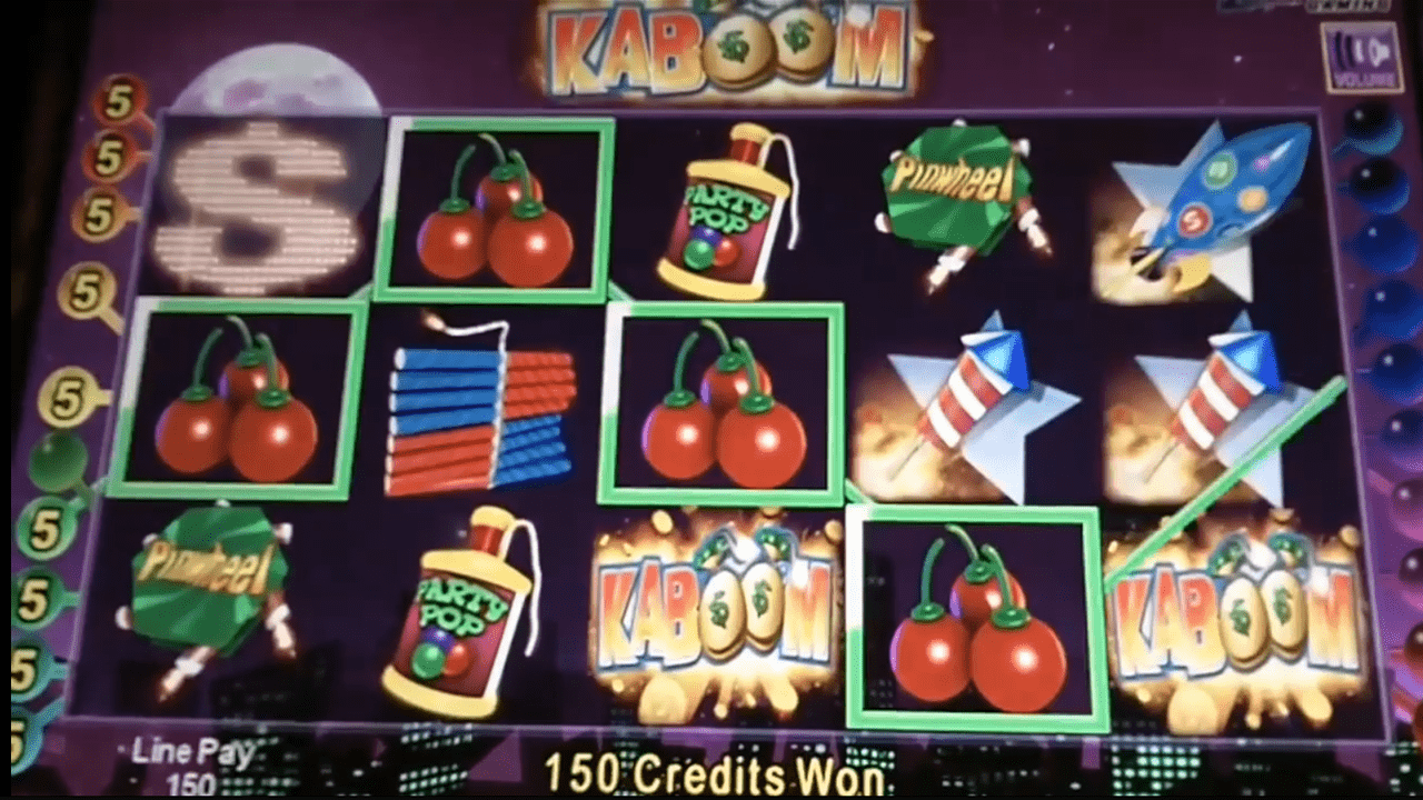 Indruk van de Kaboom slotmachine van Williams Interactive (WMS) die een aantal jaar terug bij Holland Casino te spelen was. Prima gokkast, geen toppper, maar leuk voor tussendoor.